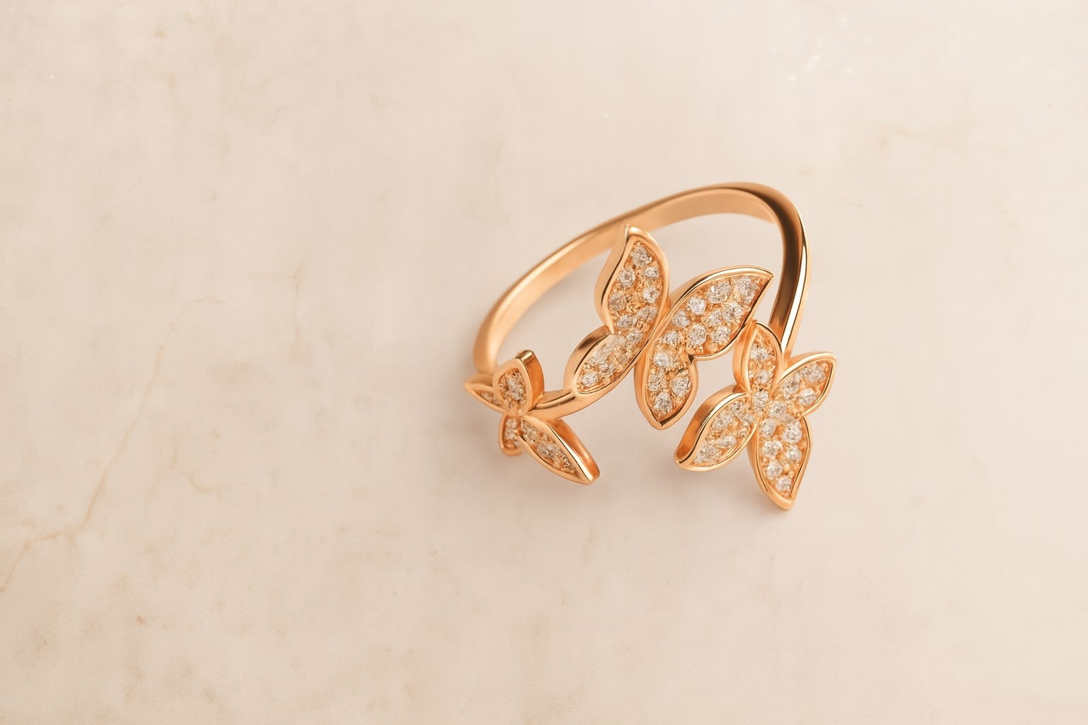 Shop nowAdd a touch of elegance to your look with this Rose Gold- Butterfly Design Ring. Crafted with intricate detailing and adorned with sparkling CZ stones, this artificial jewelry piece is perfect for parties, weddings, and...