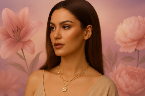 Gold Floral Charm Bracelet with Gemstone Accents – Elegant Artificial Jewelry for Women