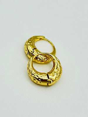 Embrace understated elegance with these chic textured gold round earrings, perfect for the modern woman. Featuring a hammered, pebble-like surface, these small, chunky hoops offer a unique tactile charm and a luxurious gold-tone finish.