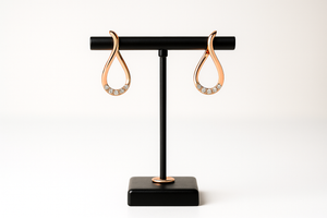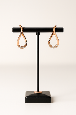 Elevate your elegance with our stunning Rose Gold Teardrop Earrings. These beautiful dangle earrings feature a graceful teardrop design, crafted in a radiant rose gold tone that adds a touch of warmth and sophistication to any look. The bottom curve of each earring is delicately adorned with sparkling pavé crystals, creating a subtle yet captivating shimmer.